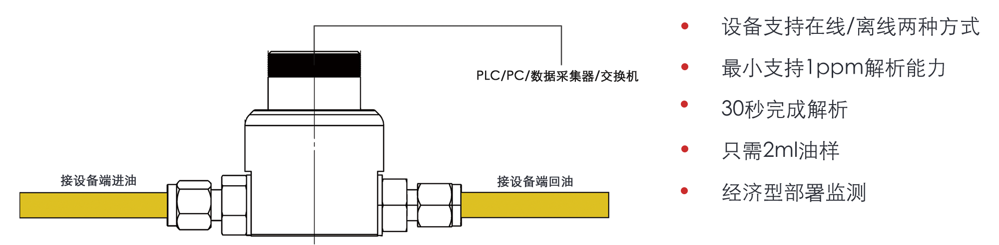 The product is based on the principle of electromagnetic induction, the device is designed with a sensitive electromagnetic coil, when there are magnetic particles through the coil, oil The ferromagnetic particles will change the magnetic field fixed by the s- ensor. According to the data changes and the intelligent match algorithm model, the magnetic field can be changed The relat- ionship between chemical and magnetic particle content can be directly read. The product is extremely sensitive to abnormal - wear particles inclusions in oil Reaction, can make a quick and effective judgment on the wear of large equipment in the industr- ial field, suitable for hydraulic oil, gear oil, lubrication Grease and other industrial oils.